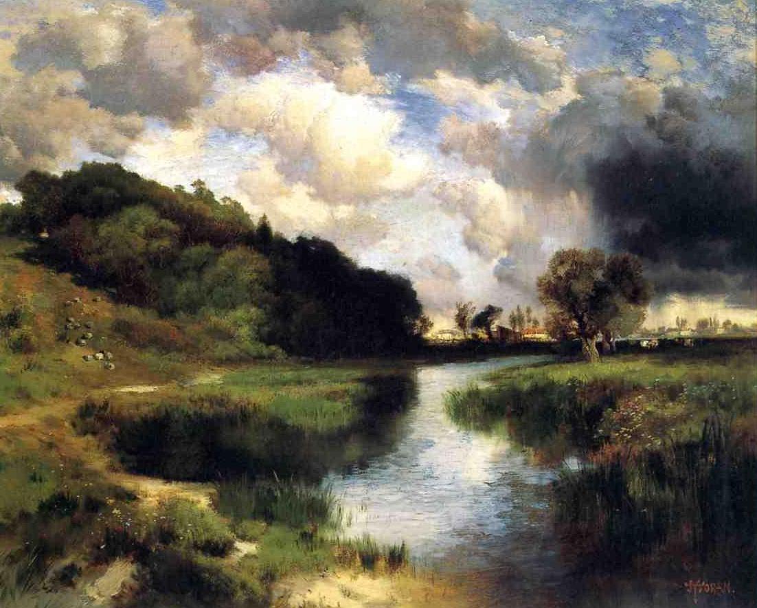 Your oil painting reproduction of "Cloudy Day at Amagansett" by Thomas Moran will be handmade to replicate all the brushstroke details, colors, and shading of the original work of art. Please be assured that you will receive a magnificent oil painting.