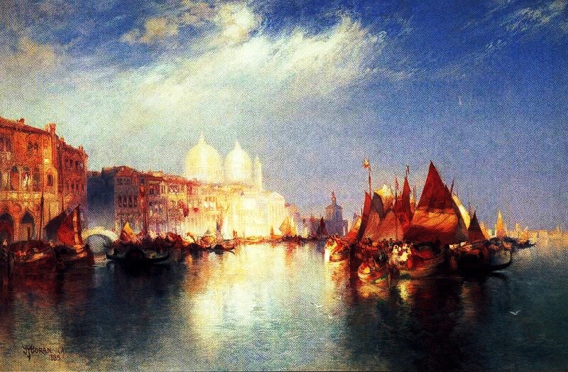 Your oil painting reproduction of "The Grand Canal" by Thomas Moran will be handmade to replicate all the brushstroke details, colors, and shading of the original work of art. Please be assured that you will receive a magnificent oil painting.
