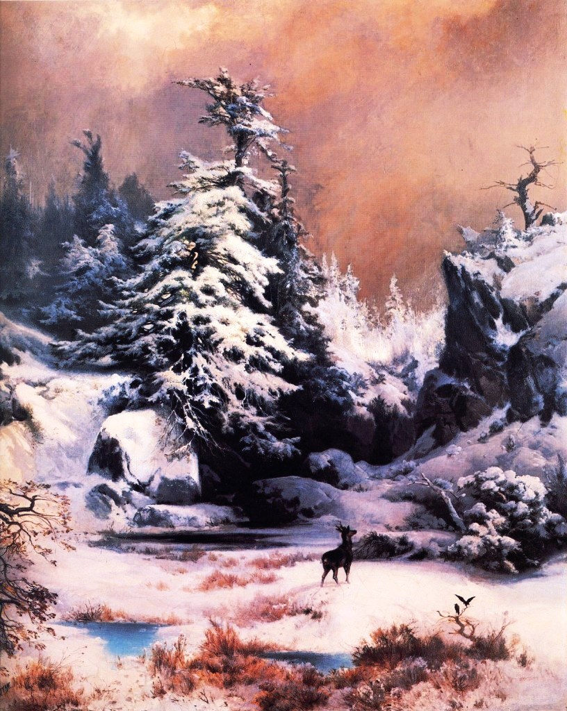 Your oil painting reproduction of "Winter in the Rockies" by Thomas Moran will be handmade to replicate all the brushstroke details, colors, and shading of the original work of art. Please be assured that you will receive a magnificent oil painting.